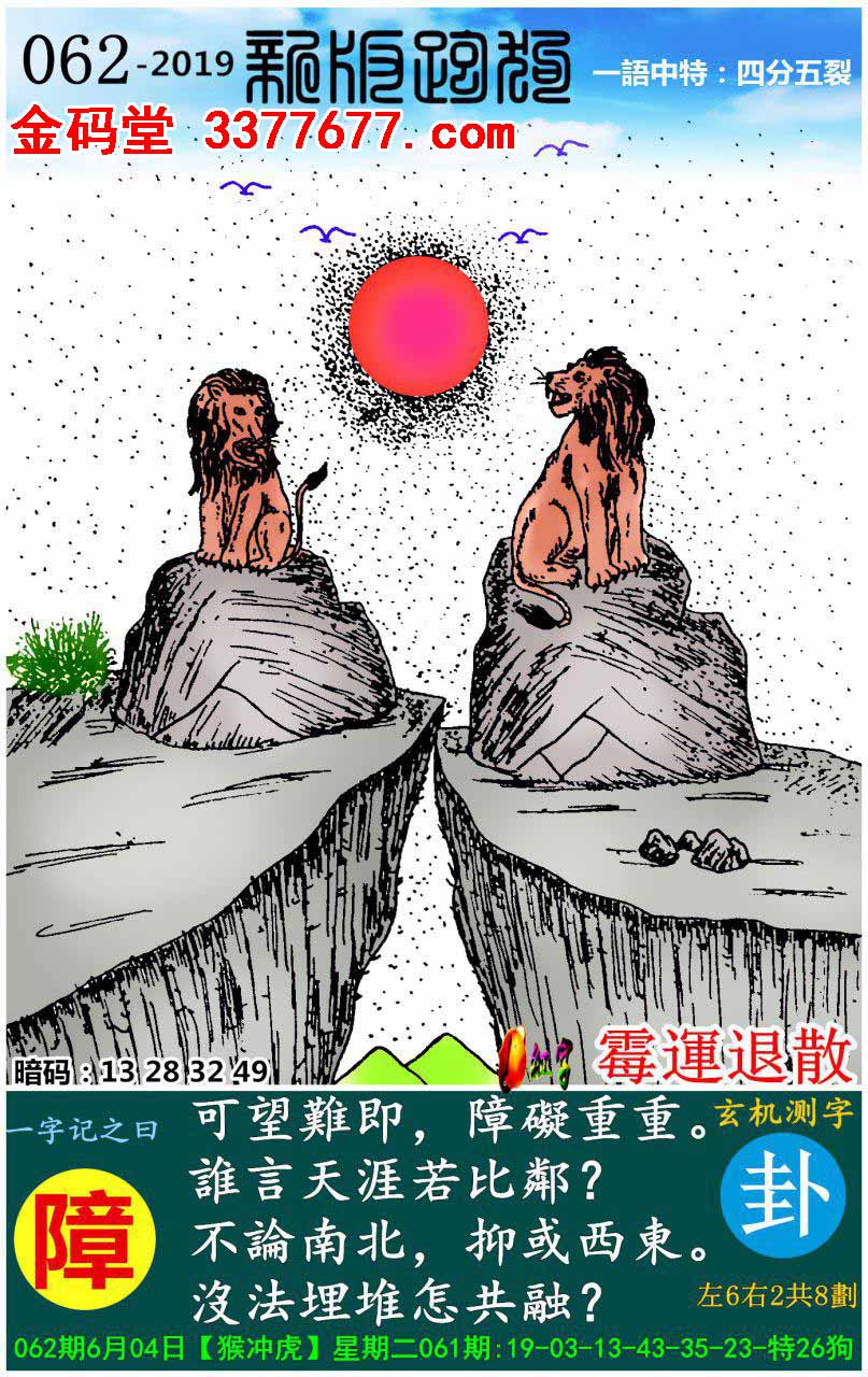 062期:新版跑狗一字記之曰【障】玄機測字:《卦》