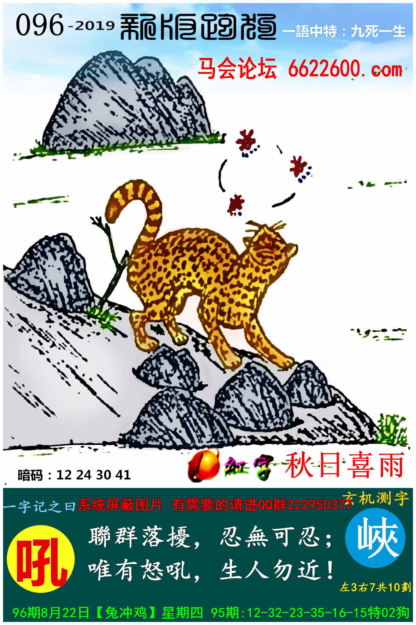 主题 : 096期:新版跑狗一字記之曰【吼】玄機測字:《峽》