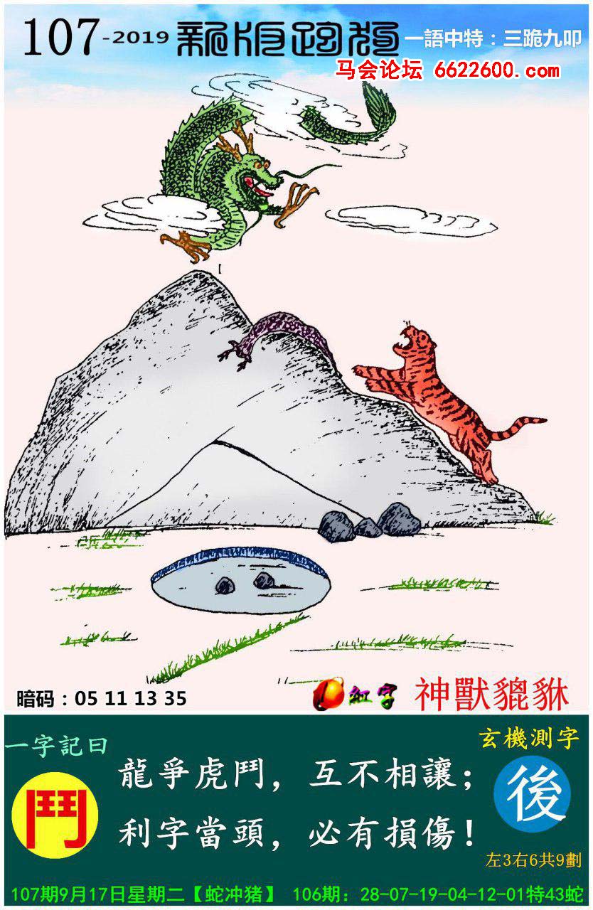 主题 : 107期:新版跑狗一字記之曰【鬥】玄機測字:《後》