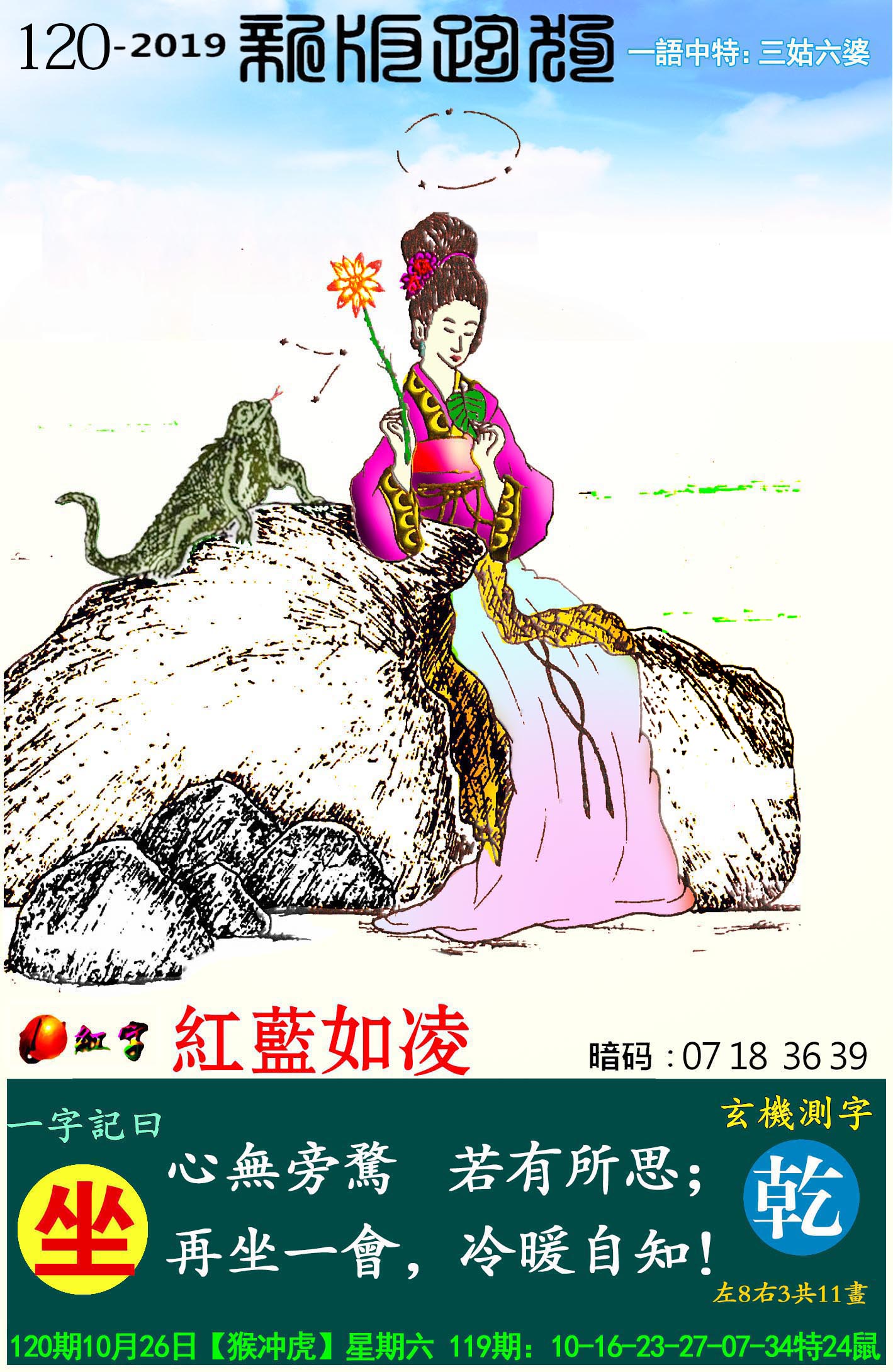 120期:新版跑狗一字記之曰【坐】玄機測字:《乾》