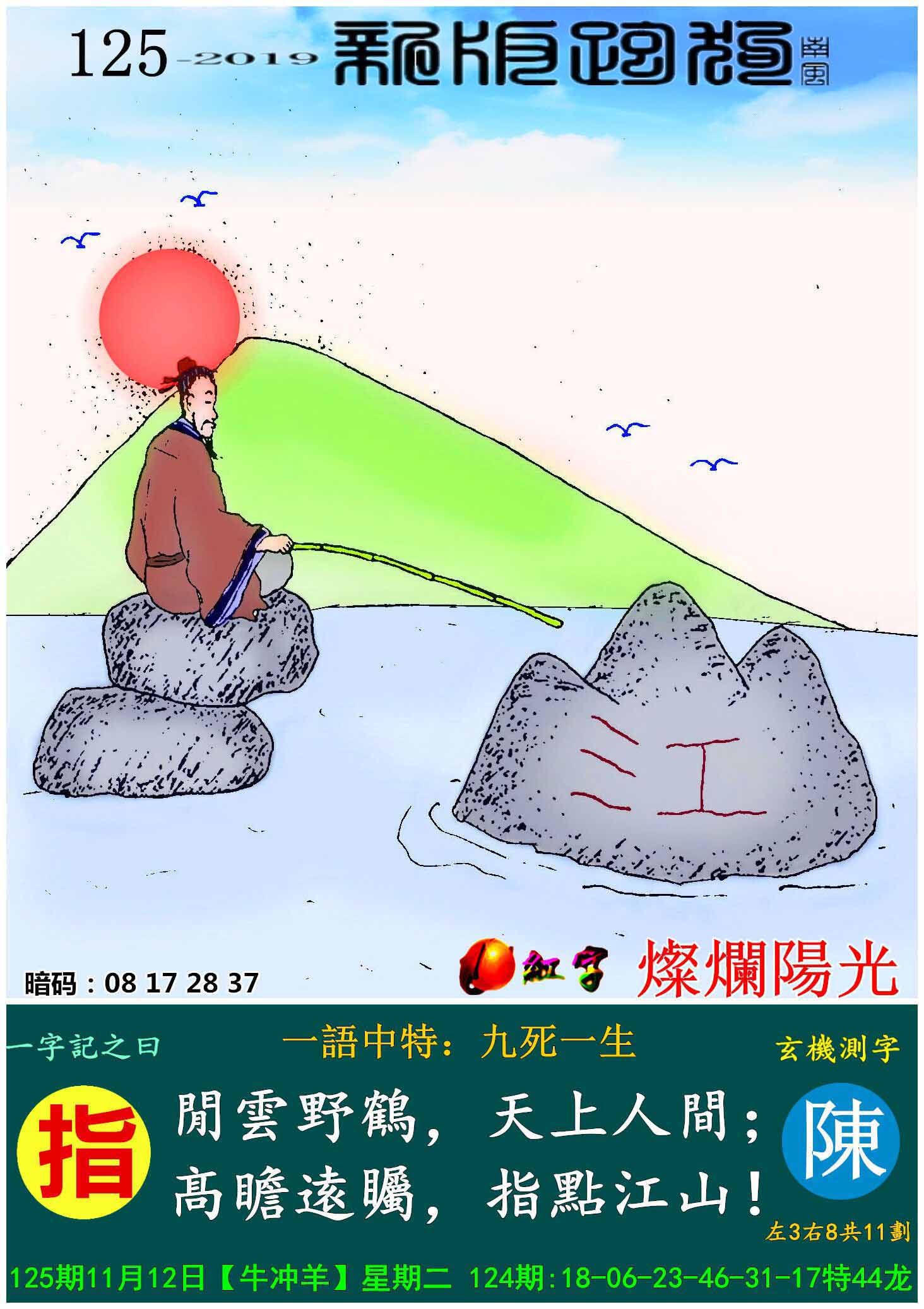 主题 : 125期:新版跑狗一字記之曰【指】玄機測字:《陳》
