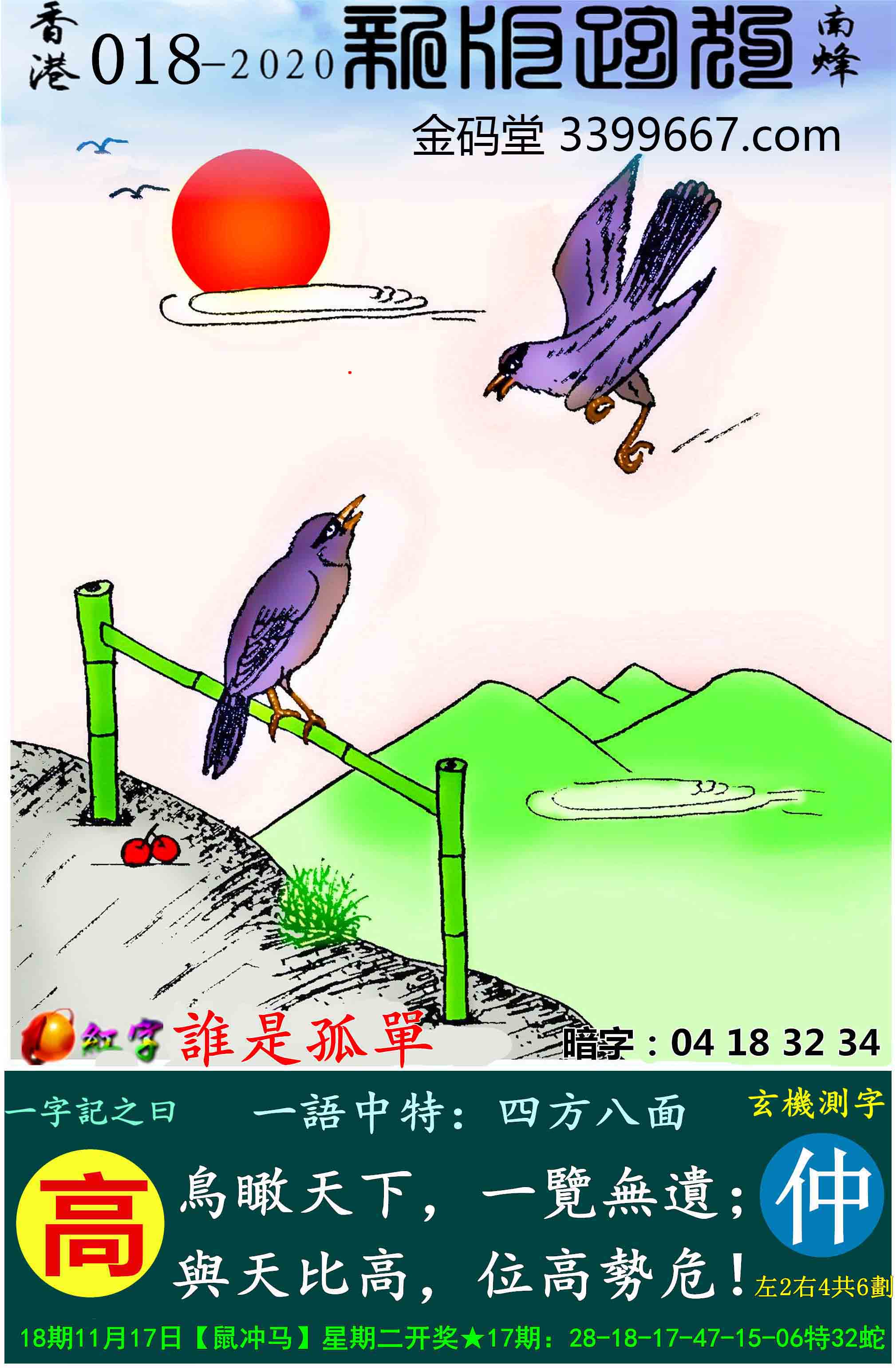 主题 : 018期:新版跑狗一字記之曰【高】玄機測字:《仲》