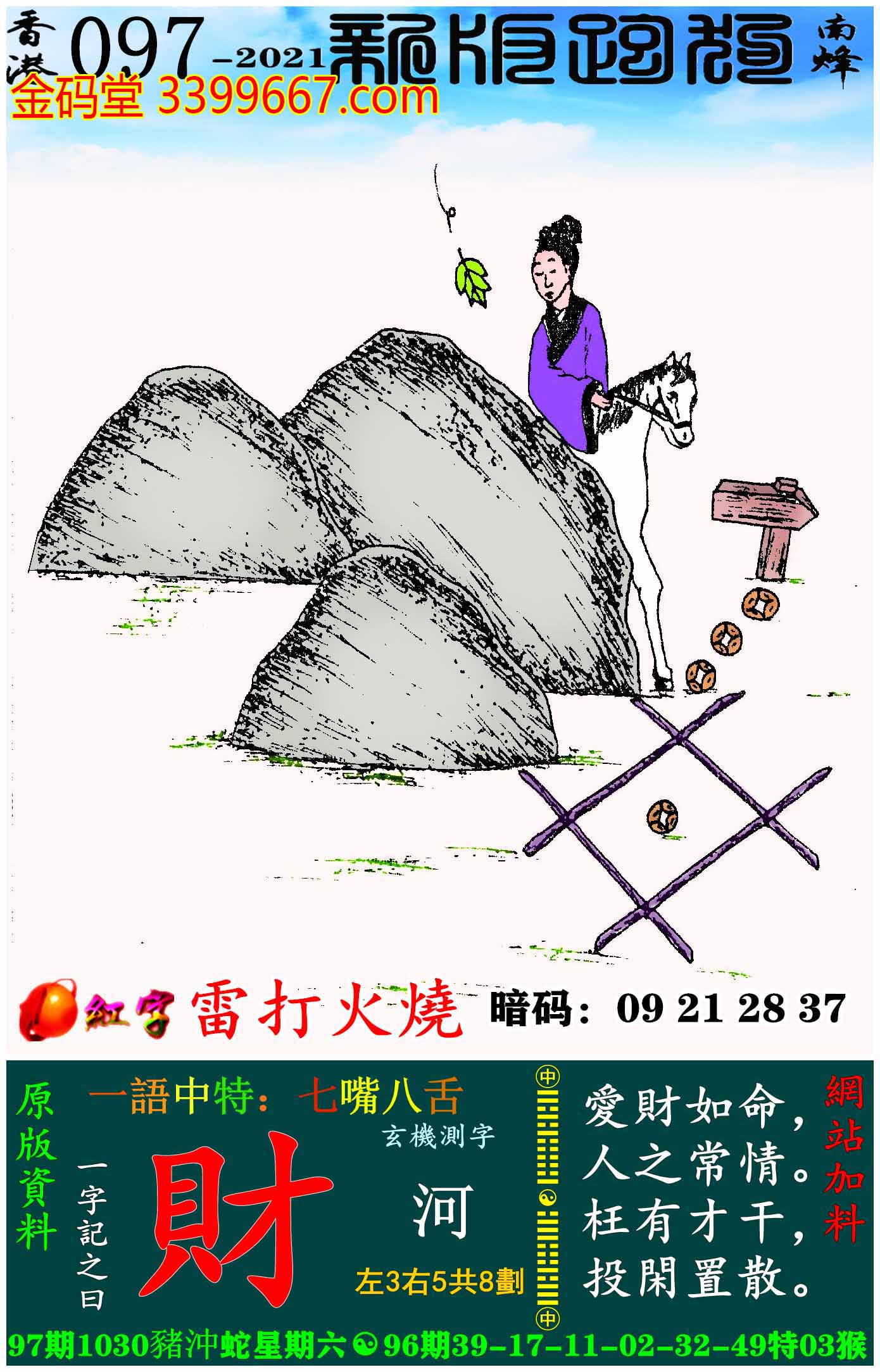 主题 : 097期:新版跑狗一字記之曰【財】玄機測字:《河》