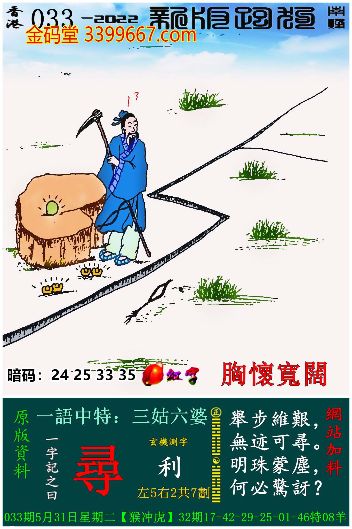 主题 : 033期:新版跑狗一字記之曰【尋】玄機測字:《利》