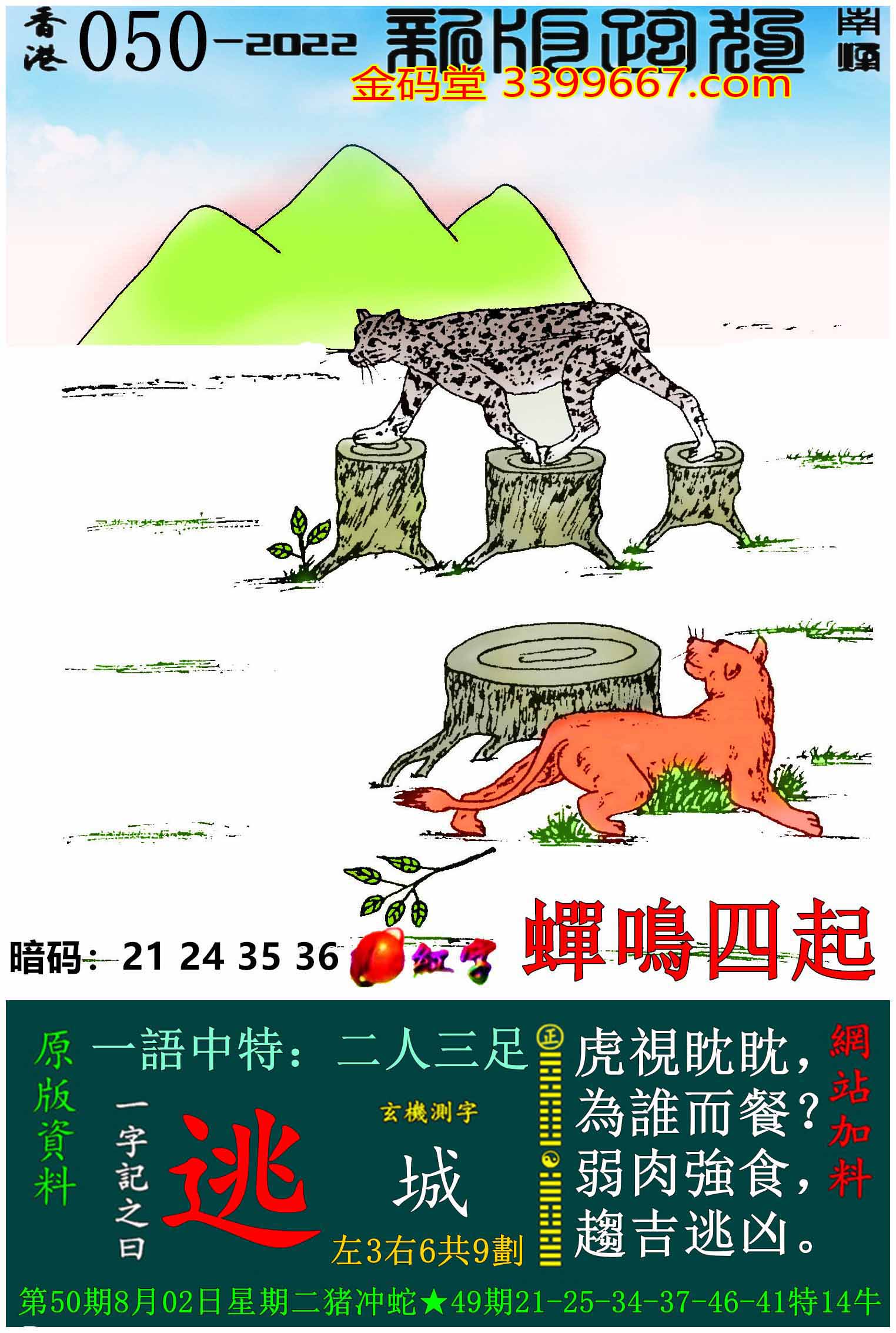 050期:新版跑狗一字記之曰【逃】玄機測字:《城》