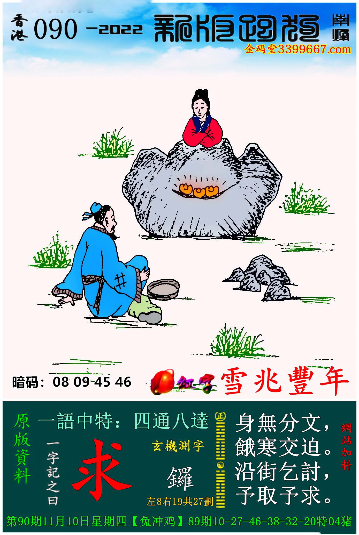 090期:新版跑狗一字記之曰【求】玄機測字:《鑼》