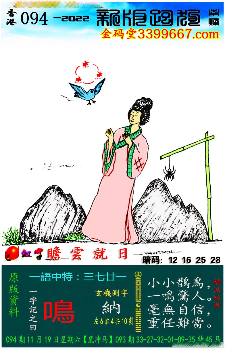 主题 : 094期:新版跑狗一字記之曰【鳴】玄機測字:《納》