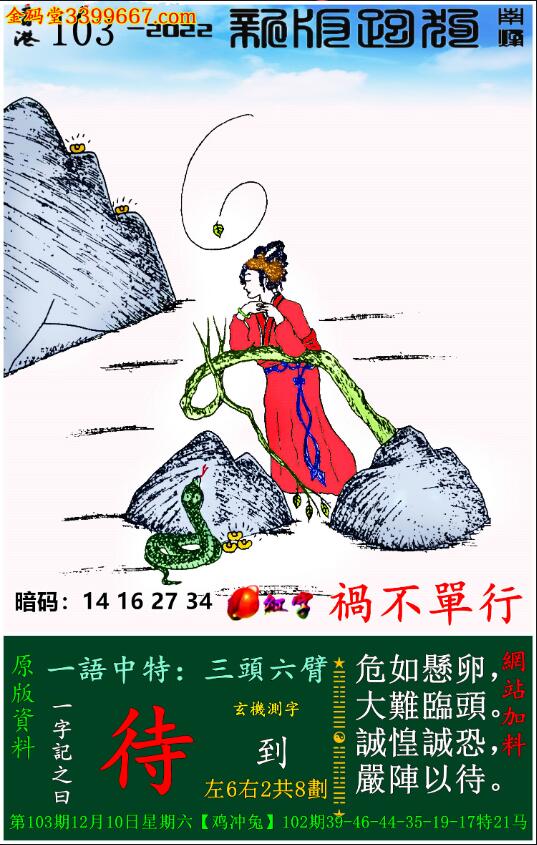 主题 : 103期:新版跑狗一字記之曰【待】玄機測字:《到》