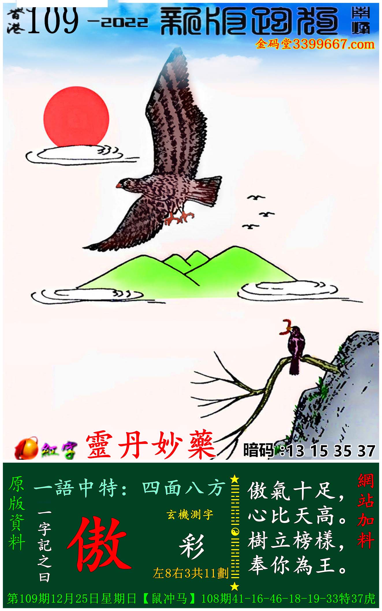 主题 : 109期:新版跑狗一字記之曰【傲】玄機測字:《彩》
