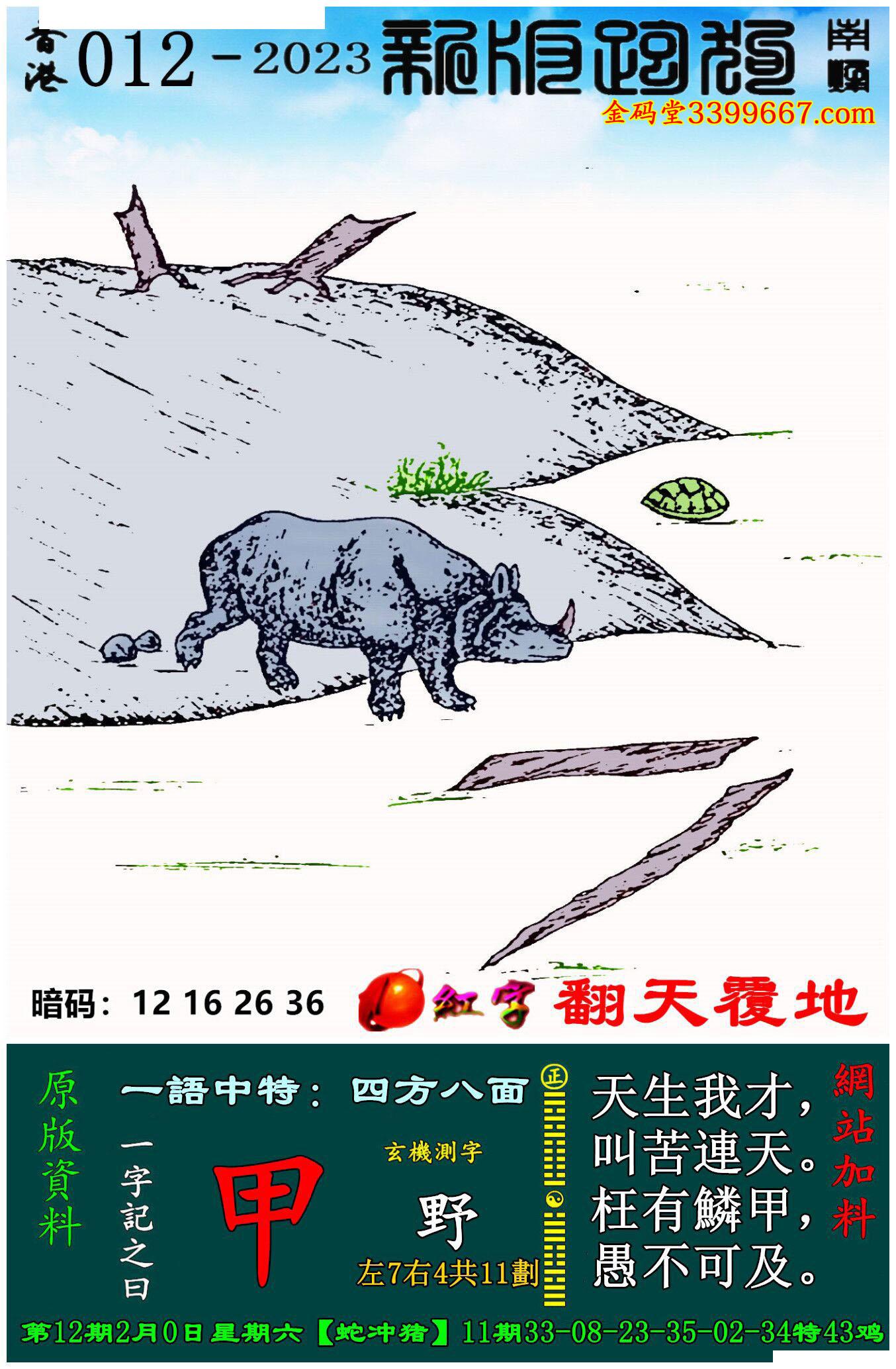 012期新版跑狗一字記之曰:【甲】