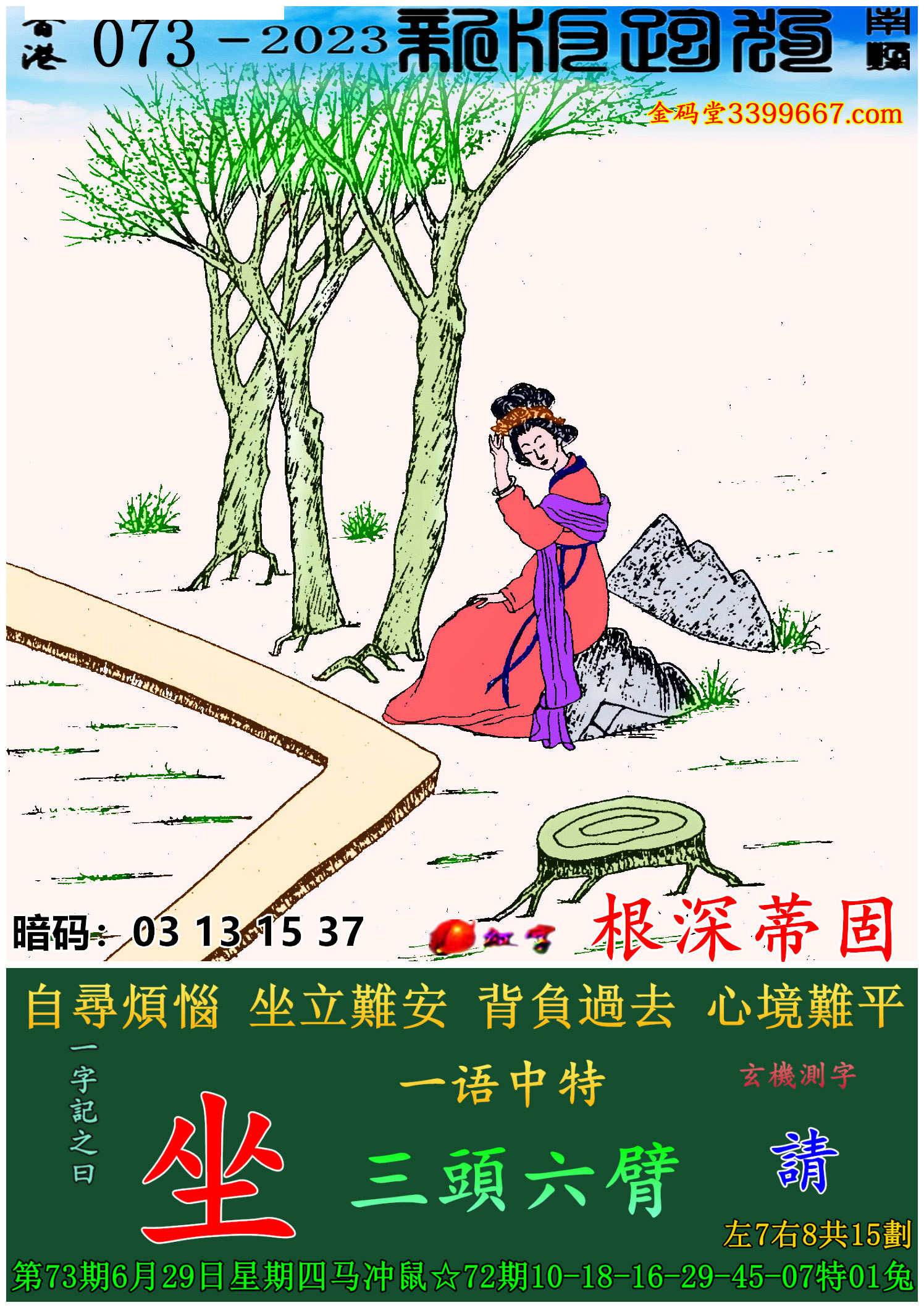 073期:新版跑狗一字記之曰【坐】玄機測字:《請》