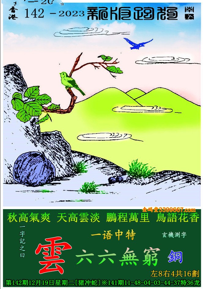 142期:新版跑狗一字記之曰【雲】 玄機測字:《銅》