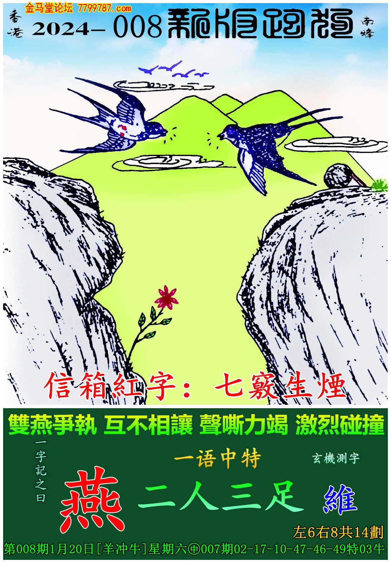 008期新版跑狗一字記之曰:【燕】