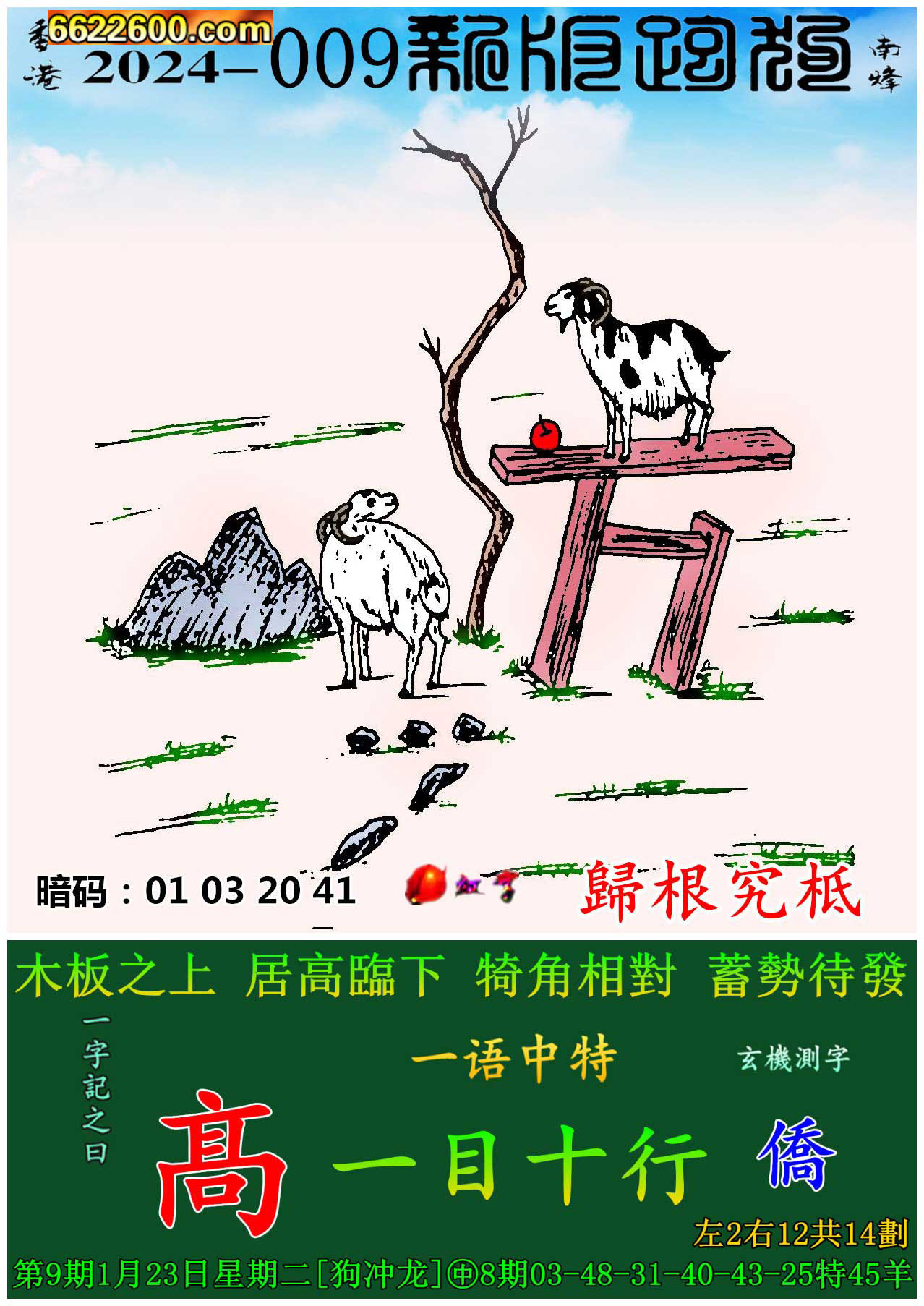 009期:新版跑狗一字記之曰【髙】 玄機測字:《僑》