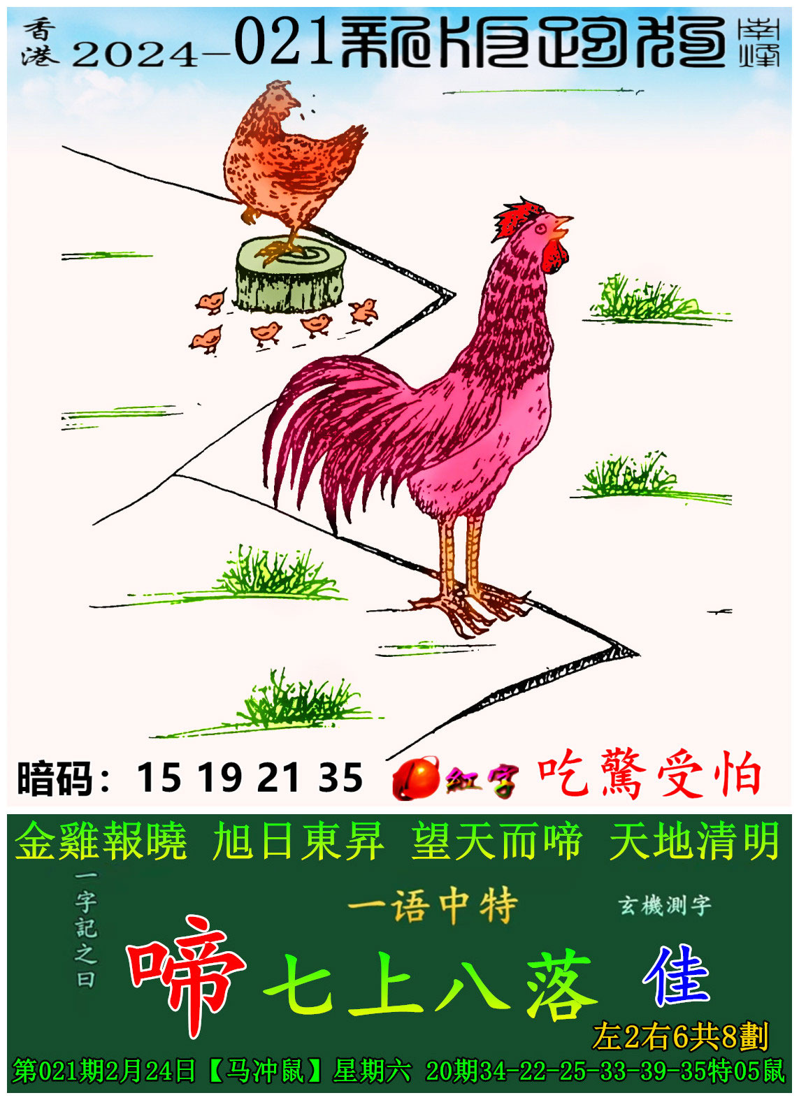 021期:新版跑狗一字記之曰【啼】 玄機測字:【佳】