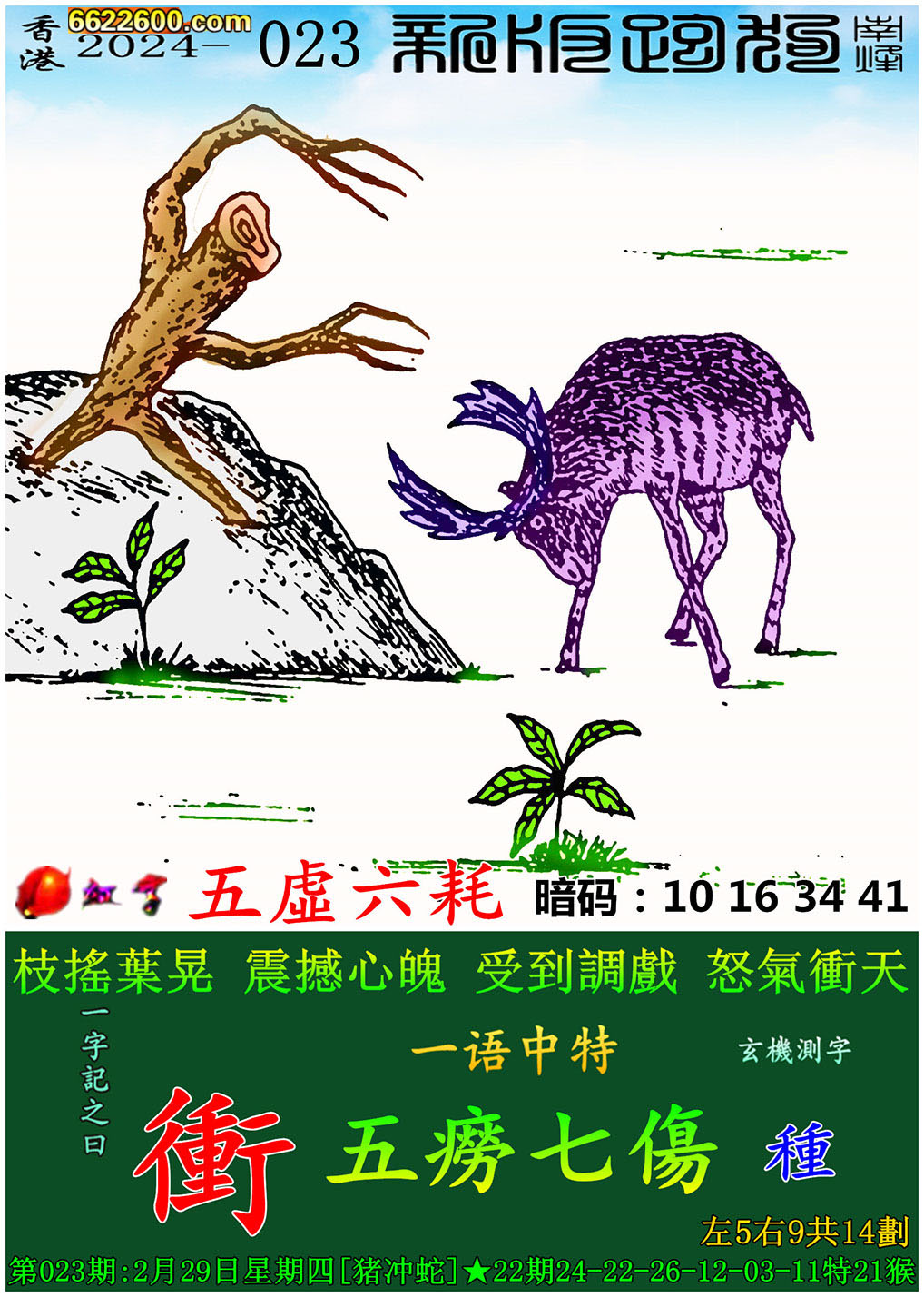 023期:新版跑狗一字記之曰【衝】 玄機測字:【種】