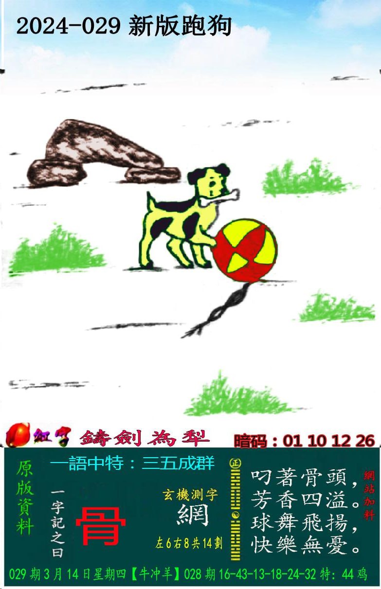 029期新版跑狗一字記之曰:【骨】