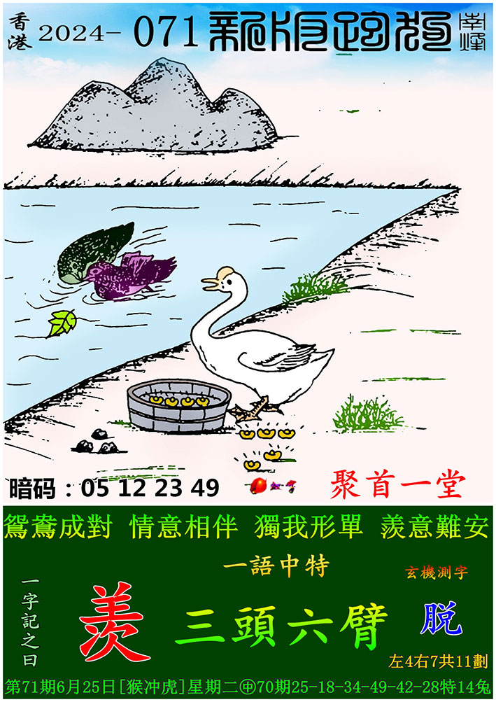 071期:新版跑狗一字記之曰【羡】 玄機測字:【脱】