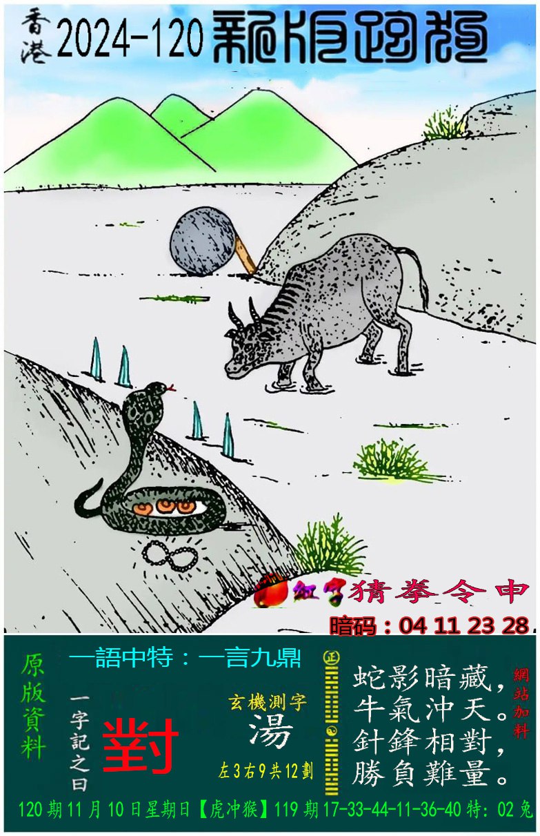 主题 : 120期:新版跑狗一字記之曰【對】 玄機測字:【湯】