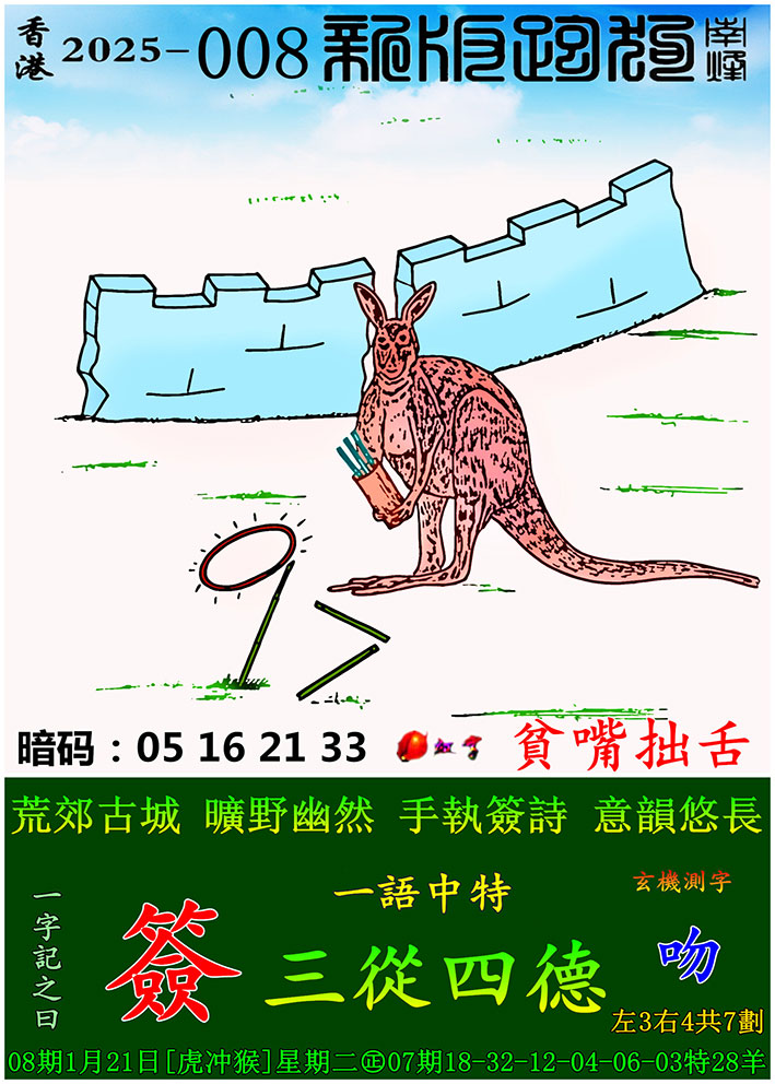 008期新版跑狗一字記之曰:【簽】