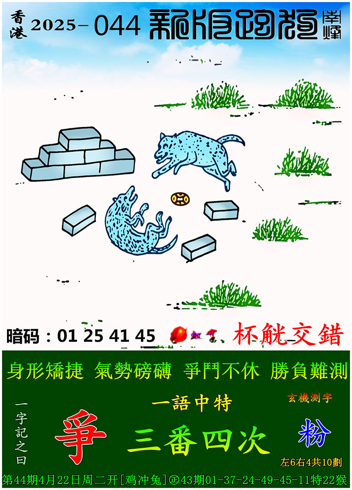 主题 : 044期:新版跑狗一字記之曰【爭】 玄機測字:【粉】