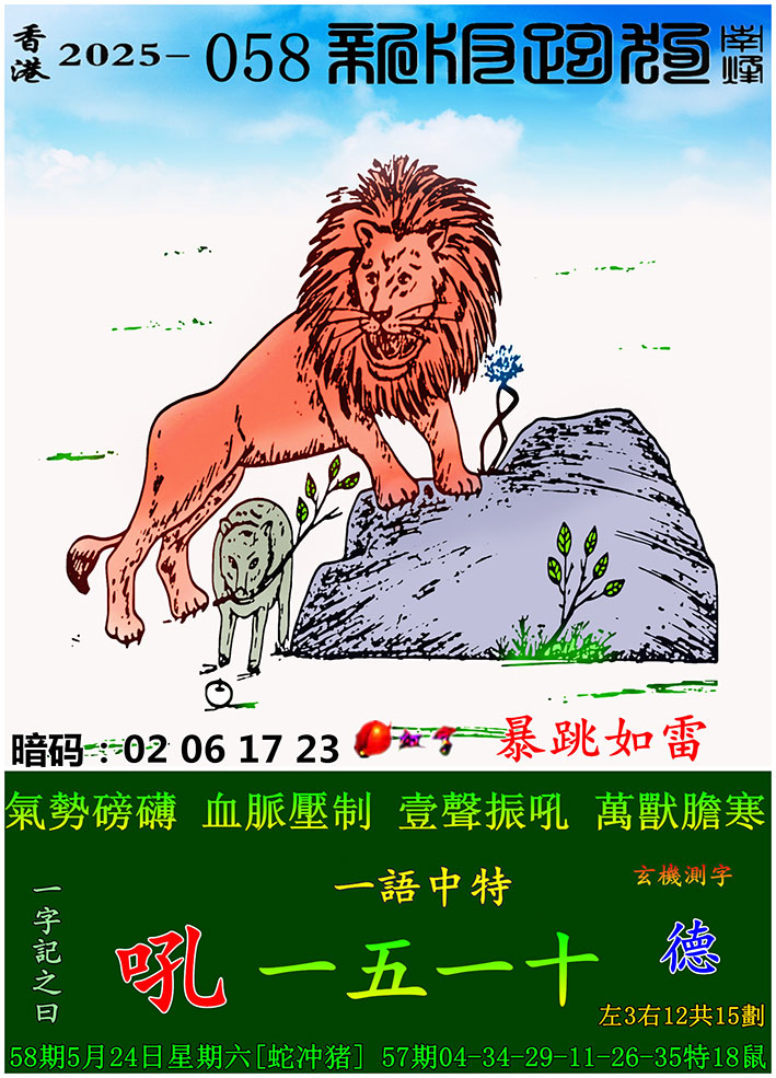 058期:新版跑狗一字記之曰【吼】 玄機測字:【德】