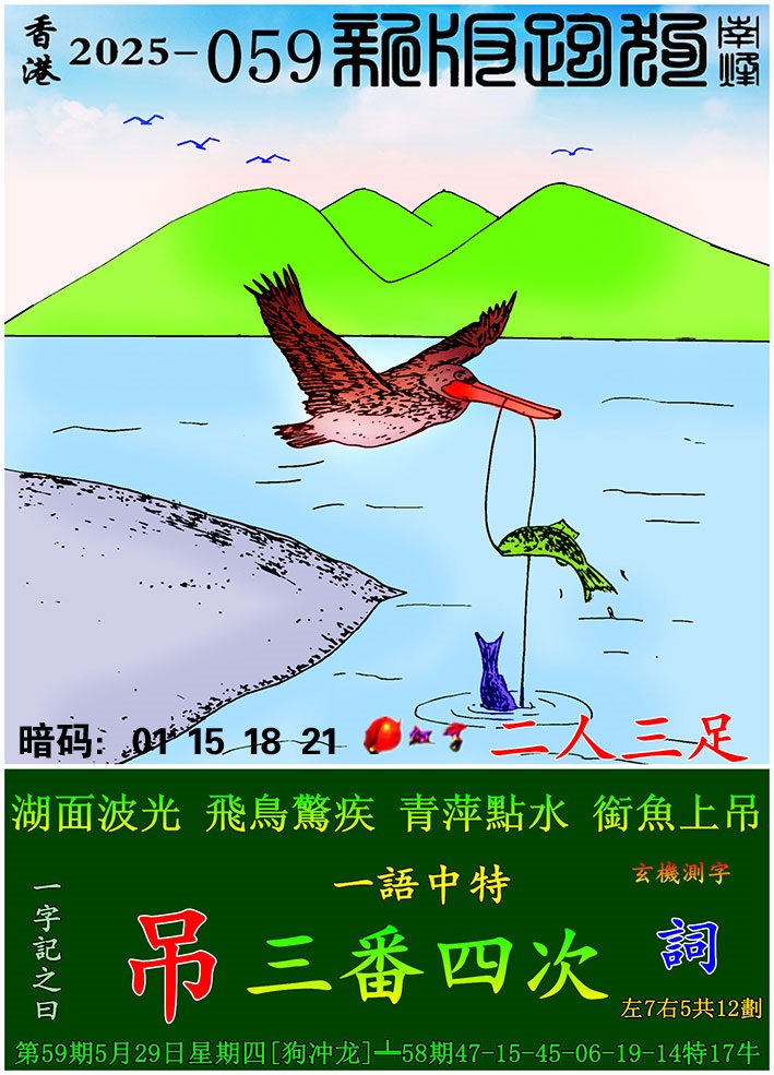 059期:新版跑狗一字記之曰【吊】 玄機測字:【詞】