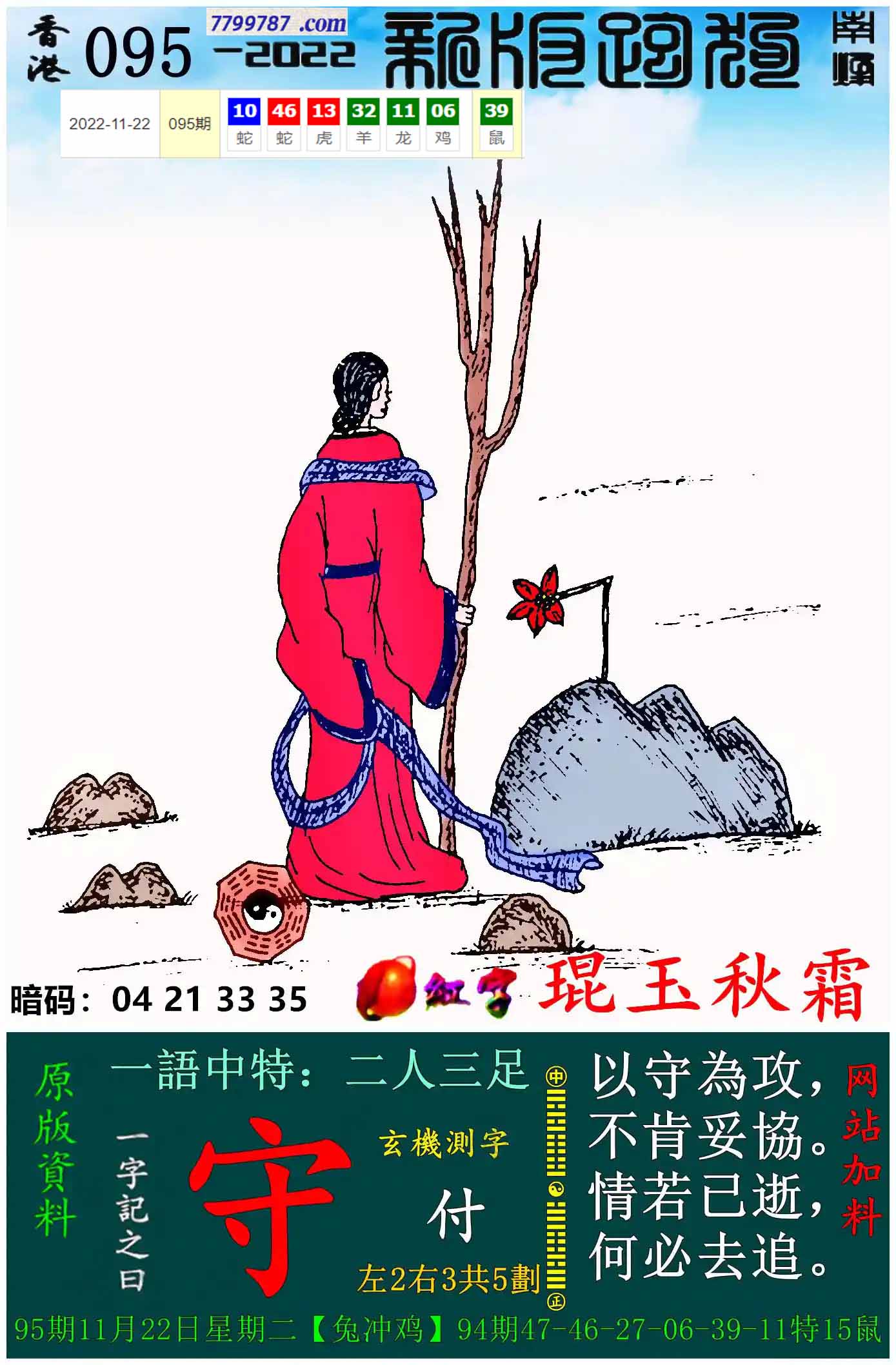 065期:新版跑狗一字記之曰【卦】 玄機測字:【嬌】