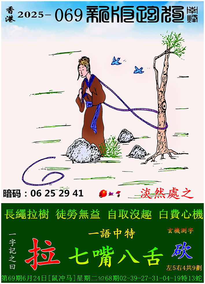 069期:新版跑狗一字記之曰【拉】 玄機測字:【砍】