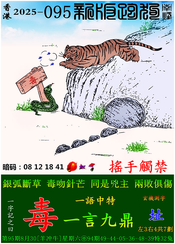 095期:新版跑狗一字記之曰【毒】 玄機測字:【址】