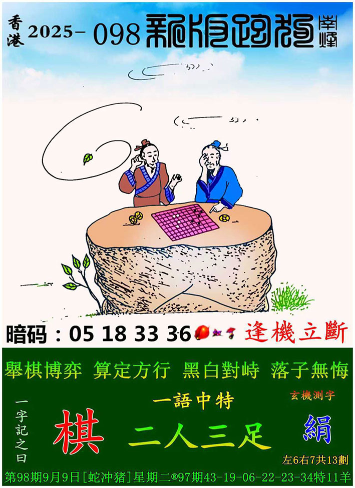 098期新版跑狗一字記之曰:【棋】