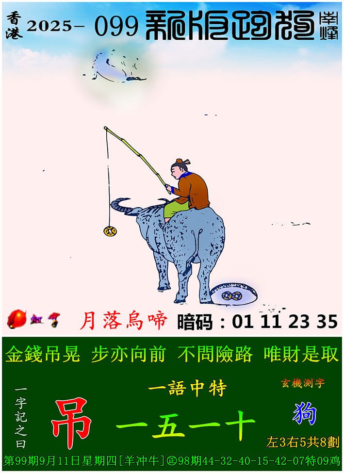 099期:新版跑狗一字記之曰【吊】 玄機測字:【狗】