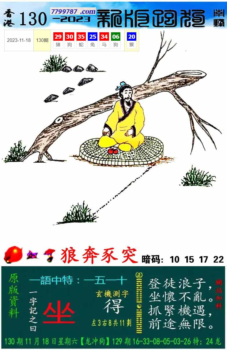 108期新版跑狗一字記之曰:【坐】