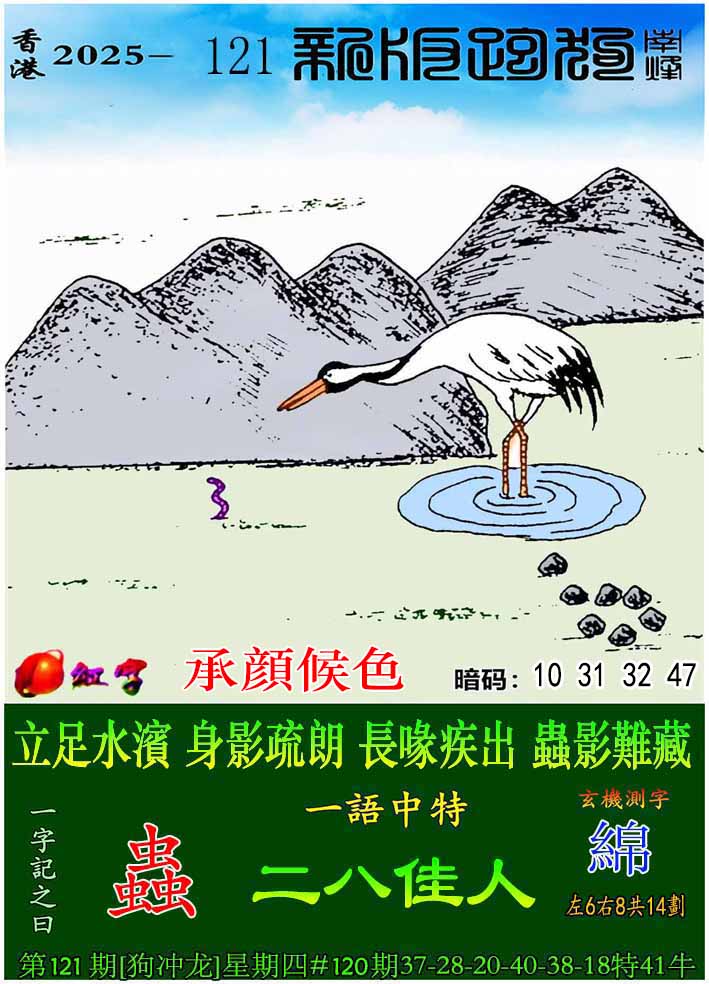 主题 : 121期:新版跑狗一字記之曰【蟲】 玄機測字:【綿】