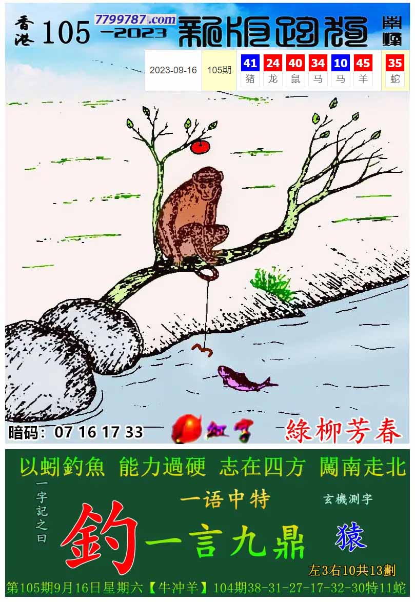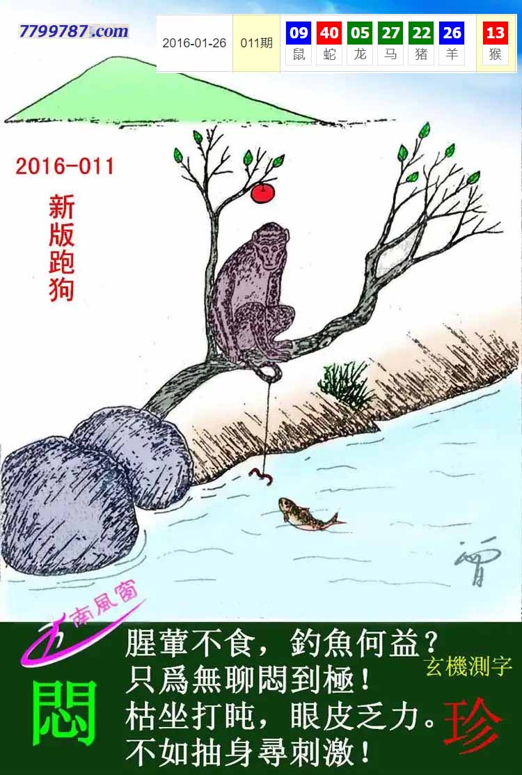 002期新版跑狗一字記之曰:【釣】
