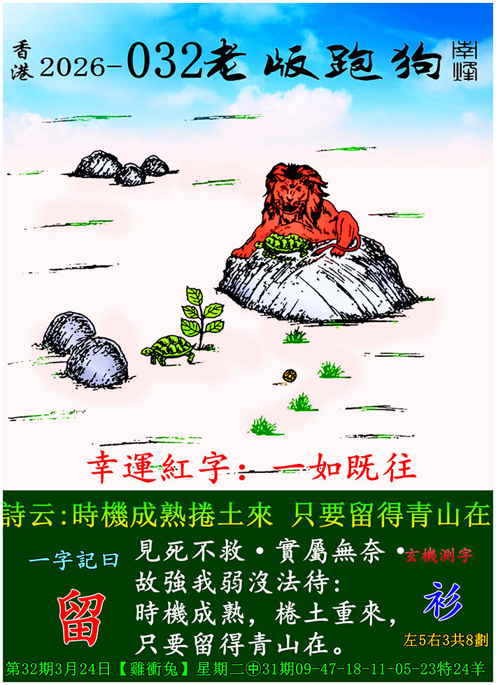 主题 : 032期老版跑狗一字記之曰:【耗】 玄機測字:《幬》